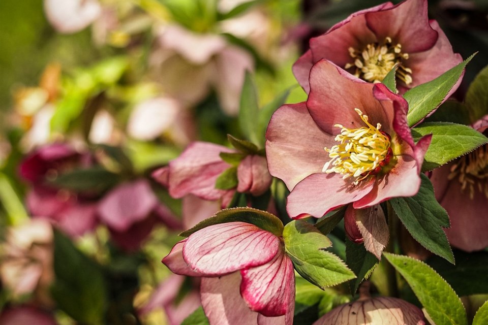 「クリスマスローズ」と聞いて瞬時にその姿が思い浮かばないという人も多いかもしれません。これは「1つとして同じものはない」と言われるほど色やビジュアルのバリエーションが豊富な植物で、気づけば時を忘れるほど見入ってしまいます。白や紫といった大株のクリスマスローズが斜面一面に広がる様子は必見!