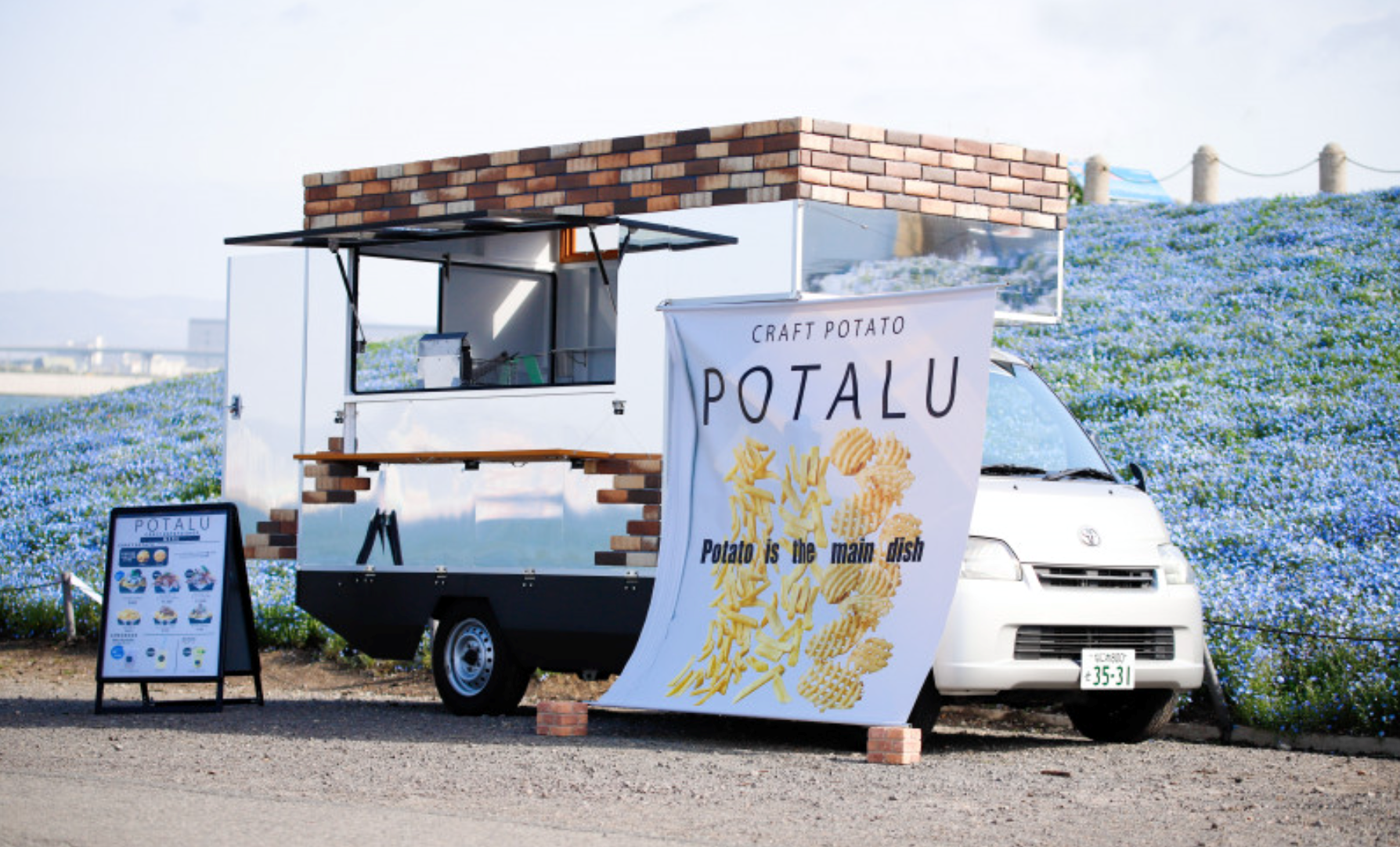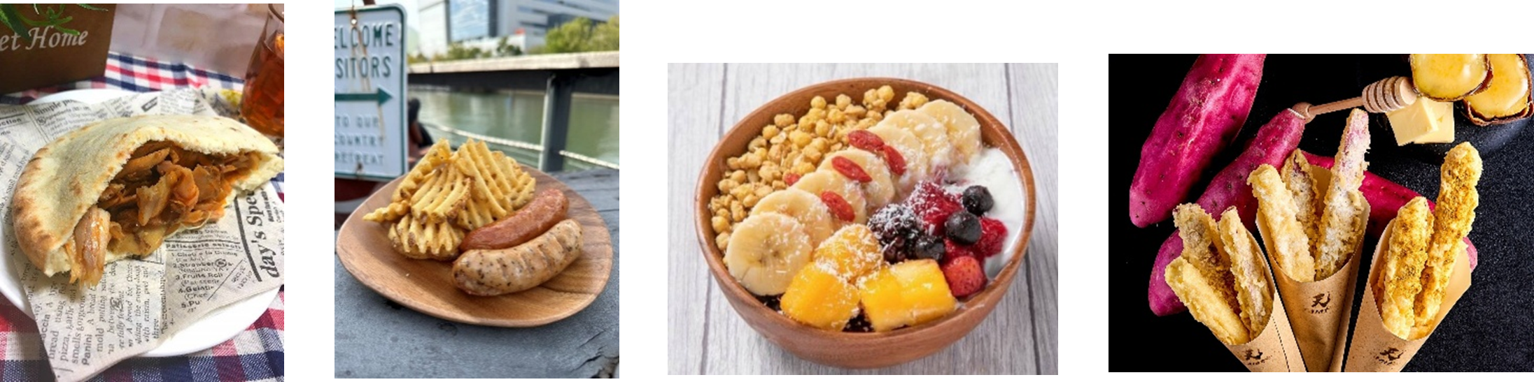 ( ※ 画像左から)「THE BEST KEBAB」(ケバブ)、「POTALU」(ワッフルポテト等)、「美佳味」(アサイーボウル)、「天carat」(やきいも天ぷら)