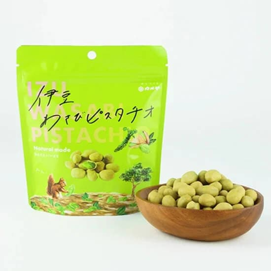 わさびの老舗「カメヤ」が贈る「伊豆わさびピスタチオ」は、伊豆天城の清流で育った静岡県産の本わさびと、香ばしいピスタチオを組み合わせた斬新な豆菓子です。