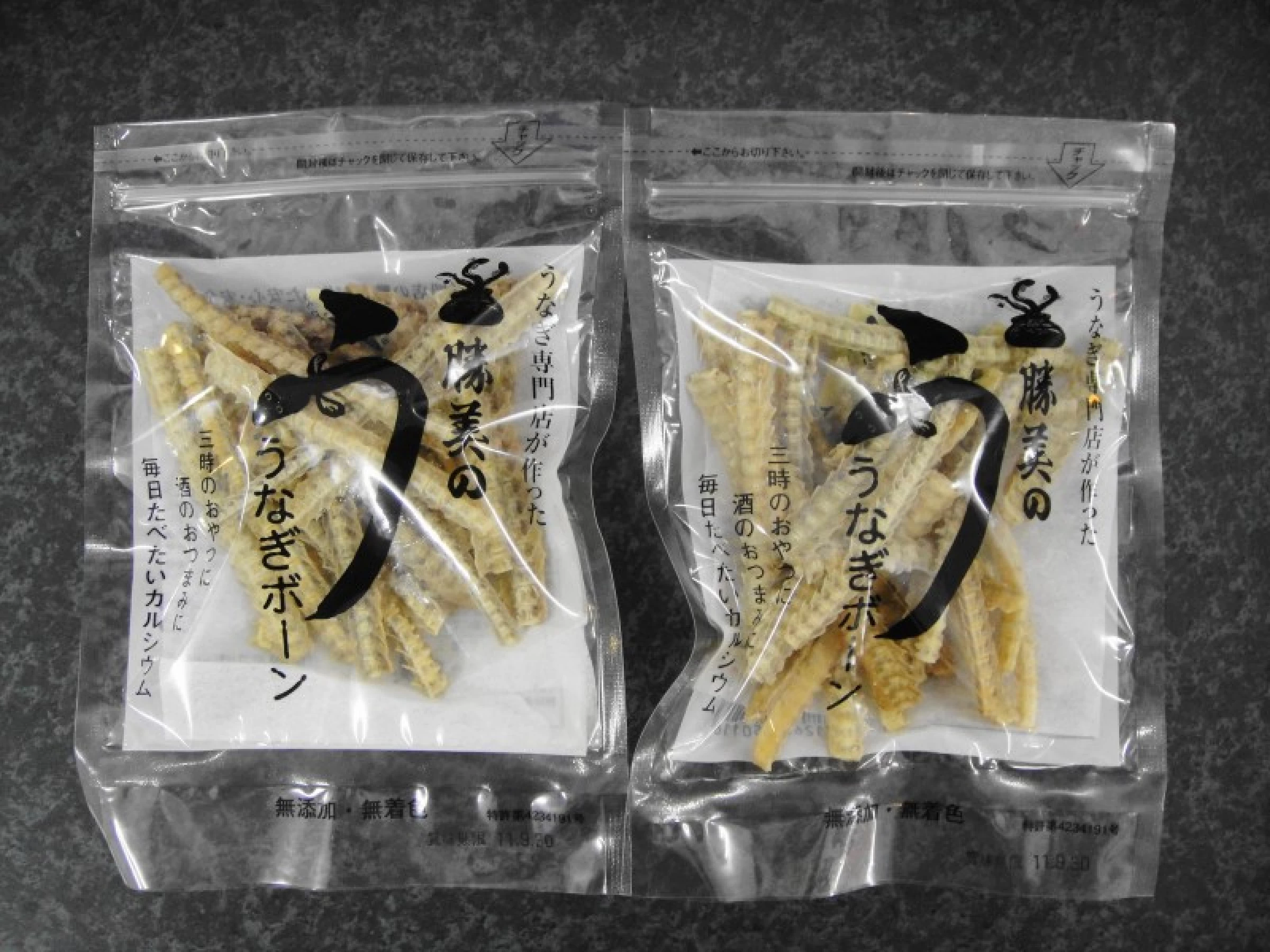 「うなぎボーン」は、浜名湖の名物うなぎを、骨ごと味わう浜松ならではの逸品です。お食事処で使用するうなぎを捌いたときにでる骨を丁寧に洗い、素焼きにして3日間冷凍。大豆白絞油でカリッと揚げた手間暇かかったおせんべいです。