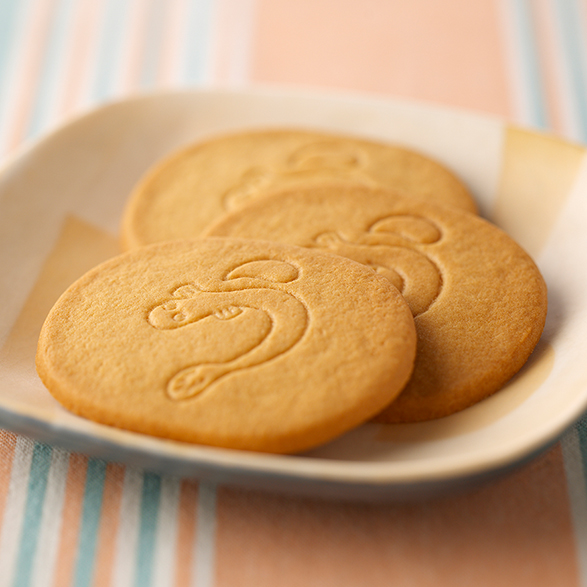 うなぎパイで有名な春華堂が手掛ける、浜松らしさ満点の焼き菓子「うなぎサブレ」。丸型のサブレに鰻型が押されているのが可愛らしい一品です。バターがたっぷり練り込まれており、ざっくりとした食感が特徴。