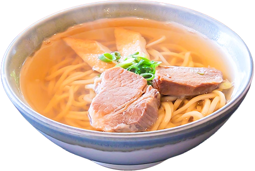 沖縄そばの中でも、宮古島で古くから愛され続けるのが「宮古そば」です。その特徴は、コシのあるストレートな平麺と、透き通ったあっさりとしたカツオ出汁のスープ、そして三枚肉とかまぼこのトッピングです。