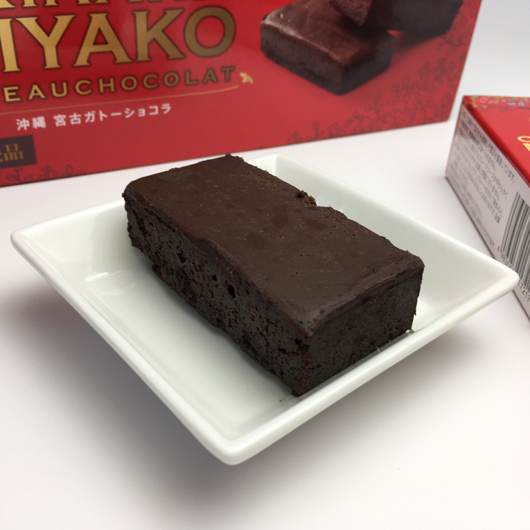 「宮古ガトーショコラ」は、宮古島産の黒糖と雪塩を使用したガトーショコラです。しっとり食感とカカオの深み、黒糖のコクが濃厚な味わいで、そのままでももちろん、冷やすとさらに濃厚さが際立ちます。