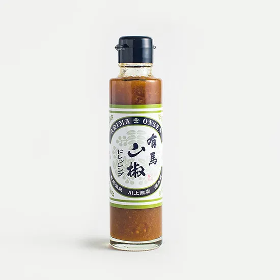 有馬温泉街の老舗が手がける、風味豊かな山椒が主役の和風ドレッシング「有馬 山椒ドレッシング」。有馬は昔から山椒の名産地であり、その歴史と伝統を受け継ぐ川上商店が、厳選した実山椒をふんだんに使用したドレッシングです。