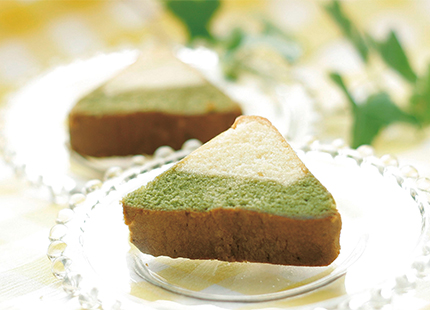 昭和7(1932)年創業の静岡県焼津市の老舗和洋菓子・パン会社かしはるの人気商品「ふじやん」。富士山型のパウンドケーキです。形を山型にするだけでなく、静岡のお茶と緑茶を使用した生地とバター生地の2層で富士山の様相を見事に表現しています。