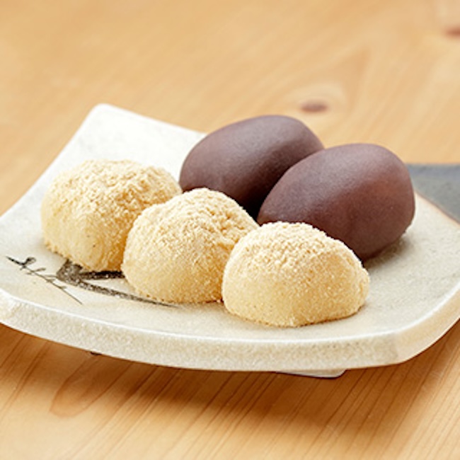 安倍川上流の金山で採れる金粉に見立てたきな粉を徳川家康公が気に入りその名を名付けたと言われる「安倍川もち」。静岡の伝統的な和菓子です。もち米には佐賀県産米を使用し、胴突きして砂糖を加え、より生食感に近くなるよう柔らかく仕上げます。つきあがったお餅に、国産大豆を使用したきな粉と、北海道産の小豆を使った自家製のこしあんをまとわせて出来上がり。