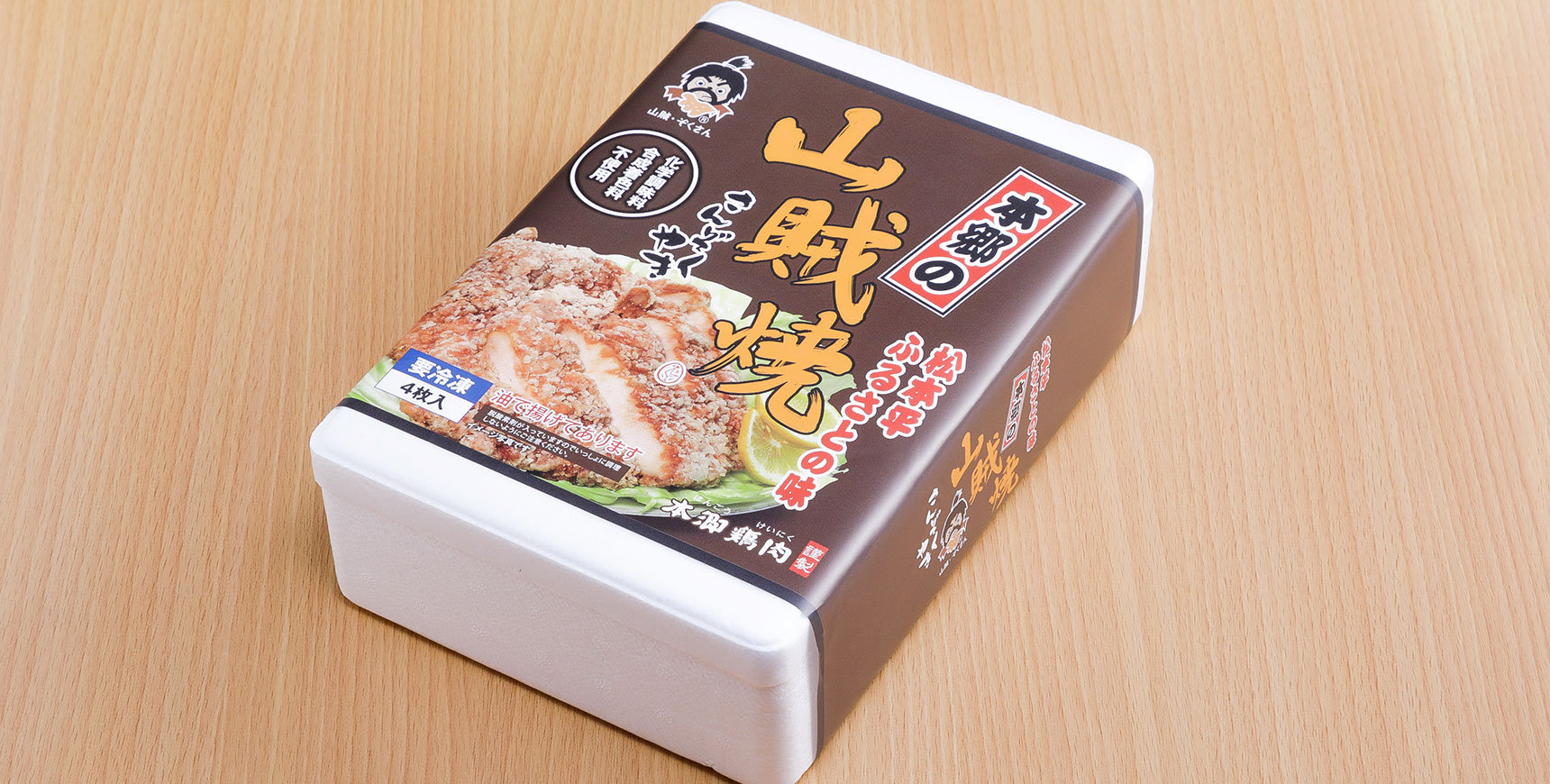 本郷鶏肉の「山賊焼」は、松本市民のソウルフードを、家庭で手軽に楽しめるように仕上げた冷凍商品です。鶏のむね肉1枚を、ニンニクと生姜を利かせた醤油ベースの秘伝タレに漬け込んでいます。濃厚な味わいはご飯のおかずに最適。お酒のアテとしても相性抜群です。