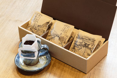 ブタ釜というアンティークな焙煎機で深煎り中心の古式焙煎を行うコーヒー専門店・koba coffee。「ドリップコーヒー」は、その本格的な味を手軽に楽しめるドリップバッグです。パッケージには美観地区の風景が描かれており、その種類は19種類。マイルドブレンドをはじめ、ほろにがブレンド、ストロングブレンドなど、10種類の味わいがあります。