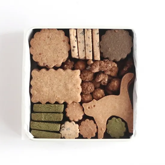 パティシエ自らグルテンフリー生活を実践した経験を元に、小麦粉不使用を選択。動物性原料も不使用のため、アレルギー持ちの方にも安心して贈れます。「猫のおさんぽクッキー缶」に入るラインナップはごまクッキーをはじめ、黒糖きなこクッキー、ほうじ茶クッキー、抹茶クッキーなど和テイストが中心。自分へのご褒美にはもちろん、猫好きの方や、センスが光る可愛らしいギフトを贈りたい方にぴったりの逸品です。