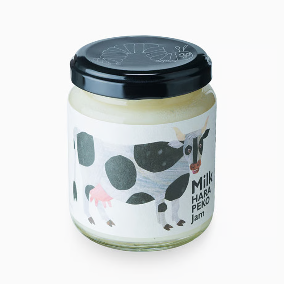 「はらぺこ ミルク」は、倉敷・美観地区にある人気カフェ・三宅商店が手掛ける、はらぺこあおむしジャムシリーズの一つです。牛乳、砂糖、生クリームをベースにした甘さ控えめのミルクジャムで、トーストに塗るとバニラビーンズによるバニラの甘い香りが豊かに立ち上ります。