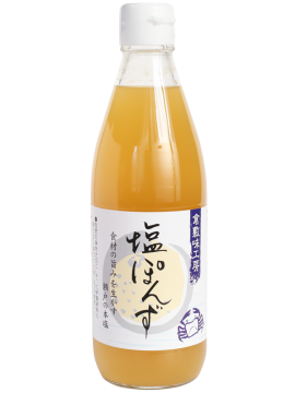 倉敷鉱泉の「塩ぽんず」は、一般的な醤油ベースではなく、高知県産のゆず果汁と徳島県産のすだち果汁を贅沢に使い、瀬戸内産の海塩で味を調えたポン酢です。かつおとこんぶの旨味を利かせており、柑橘の爽やかな酸味が素材の味を最大限に引き立てます。