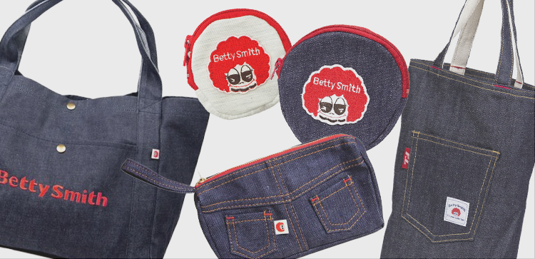 国産ジーンズ発祥の地・児島で、ジーンズの生産が始まった頃からさまざまな商品を展開しているベティスミス。ジーンズ製造で培ったタフな縫製技術と、遊び心あふれるデザインが融合した雑貨は、デニムの魅力を気軽に日常に取り入れるのに最適です。
