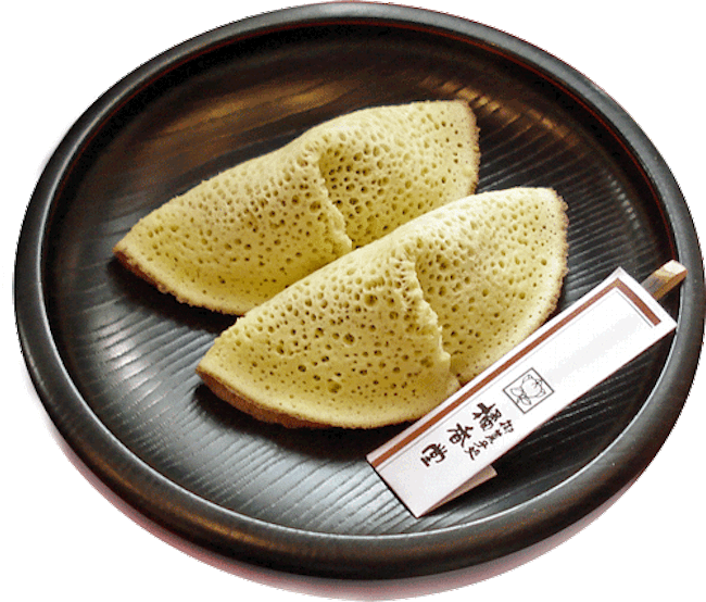 明治10(1877)年の創業以来、倉敷を象徴する銘菓として愛され続ける「むらすゞめ」。新鮮な卵をたっぷり使った和製クレープのような薄い外皮は、気泡がポツポツと開いた編笠状の独特な見た目が特徴です。