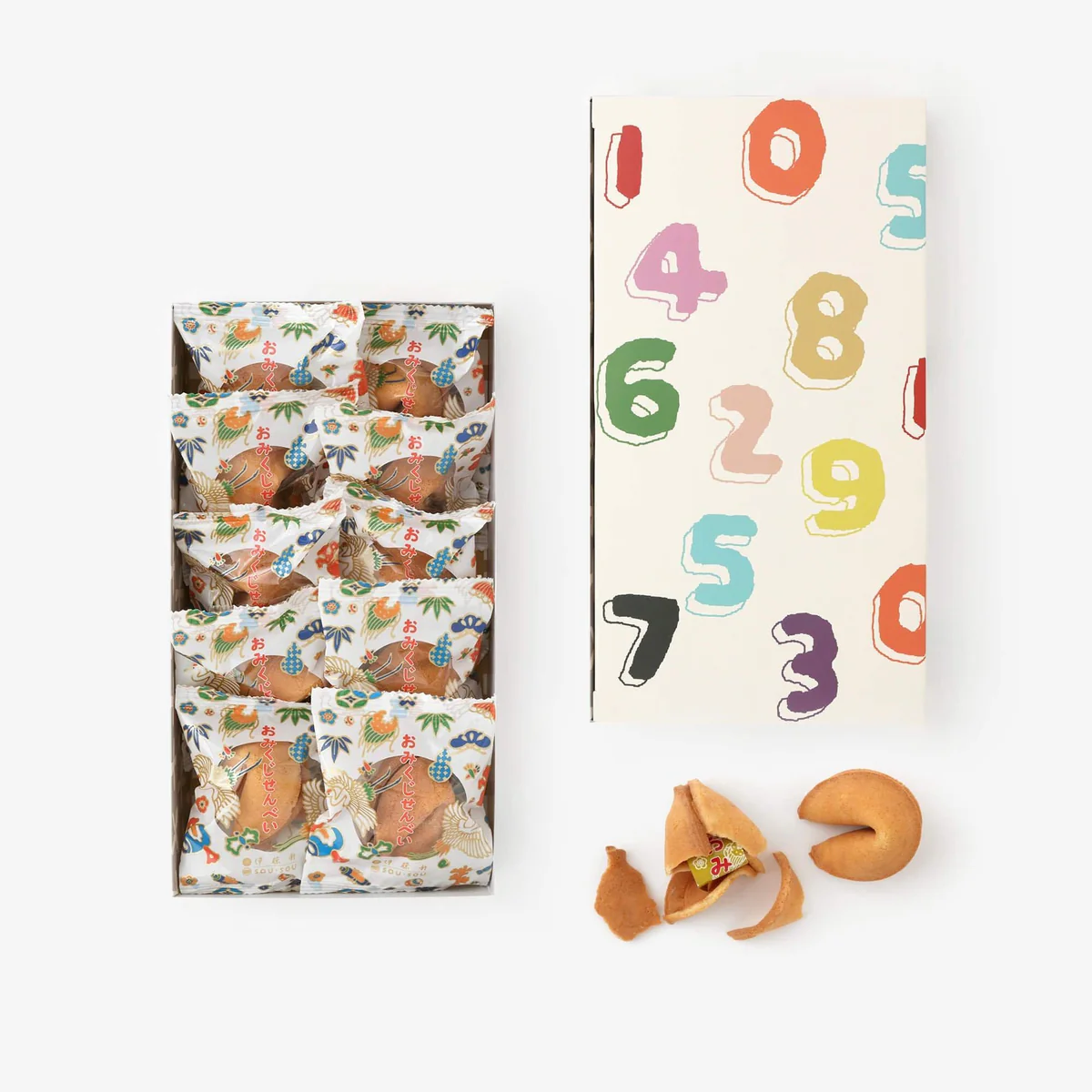 「おみくじせんべい」は、老舗菓子メーカー「伊藤軒」とテキスタイルブランド「SOU・SOU」のコラボレーションが生んだ、遊び心あふれる一品です。香ばしく焼き上げられたおせんべいの中には、可愛らしい「おみくじ」が隠されており、食べるたびに運勢占いを楽しめます。