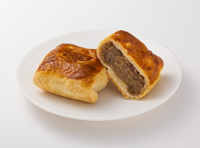 パイ生地と和の餡が見事に融合した、三万石のもう一つの看板商品「エキソンパイ」。バター風味の香ばしいパイ生地の中には、くるみ入りの白餡がぎっしり。くるみのカリッとした食感と豊かな風味が、上品な甘さの餡をより一層引き立てます。