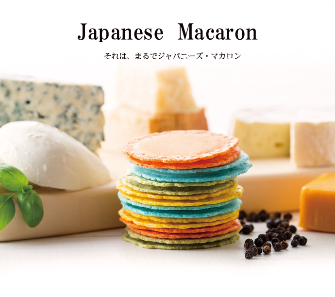 「クアトロえびチーズ」は、ジャパニーズ・マカロンと称される、目にも鮮やかな進化型海老せんべいです。ゴルゴンゾーラ、チェダー、モッツァレラ、カマンベールなど、4種類の本格チーズをサクサクの海老せんべいでサンドした独創的なスタイルが評価され、モンドセレクション金賞や「瀬戸内ブランド」の認定を受けています。