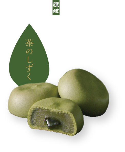 「茶のしずく」は、香川県産の希少な高瀬茶を贅沢に使用した、お茶の旨味が溢れ出す濃厚なミルク饅頭です。生地、餡、そして中心のとろりとした蜜すべてにお茶を練り込み、一口で三段階の異なる食感とお茶の香りを楽しめます。