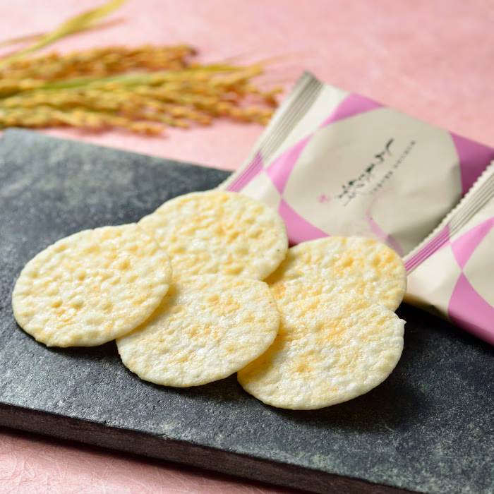 「しろえび紀行」は、「富山湾の宝石」と称される希少なしろえびを贅沢に練り込んだ、薄焼きのおせんべいです。富山県産のブランド米・てんたかく100%と立山連峰などから流れ出た伏流水を仕込み水に使用。ブランド米・てんたかくはコシヒカリよりも粒が大きく、ちょうどよい粘り気のため、さっぱりした食感を味わえます。