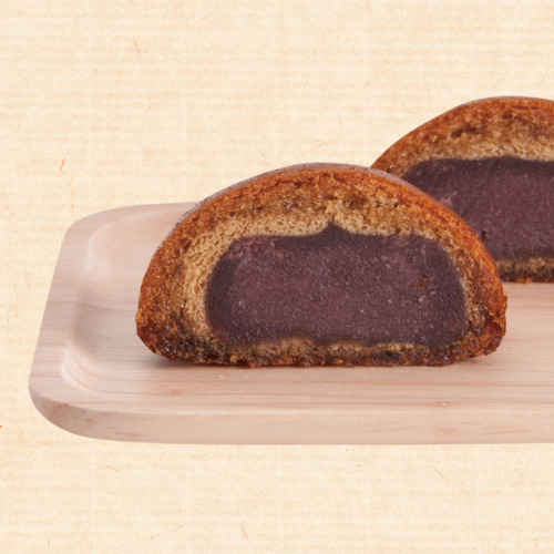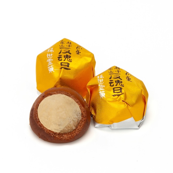 400余年前から伝わる越中富山の「反魂丹(はんこんたん)」という薬の名にあやかった、遊び心あふれる一口サイズの焼き菓子「反魂旦」。ココアを練り込んだ香ばしい生地の中には、白手芒豆を用いた自家製の白餡がぎゅっと詰まっています。