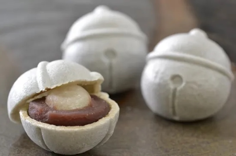 「東京鈴もなか」は、東京駅の待ち合わせスポットとして親しまれる「銀の鈴」をモチーフにした最中。香ばしい鈴型の最中種に、ふくよかなこし餡とやわらかな求肥餅を閉じ込めており、さっくりとした皮の食感と、なめらかな餡、もちっとした求肥の組み合わせが楽しめます。やさしい甘さで食べやすく、見た目のかわいらしさも魅力です。