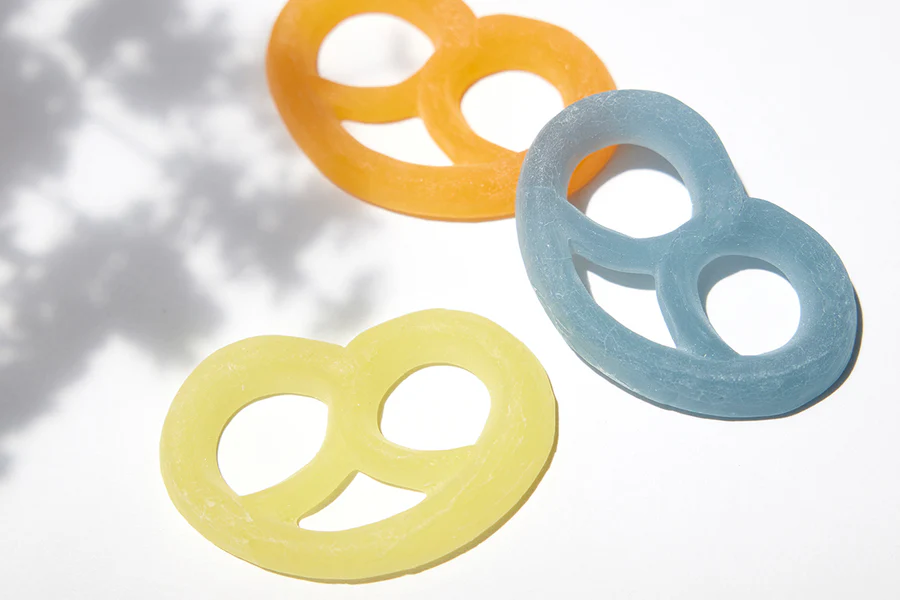 カンロ飴やピュレグミで知られるカンロ直営のギフトブランド・ヒトツブカンロ。その代表商品が、「グミッツェル」です。試行錯誤を繰り返し、5年もの歳月をかけて完成させた新食感のグミで、プレッツェル型の可愛らしい見た目ながら、外側はパリッと、中はしっとりとした驚きのコントラストを楽しめます。