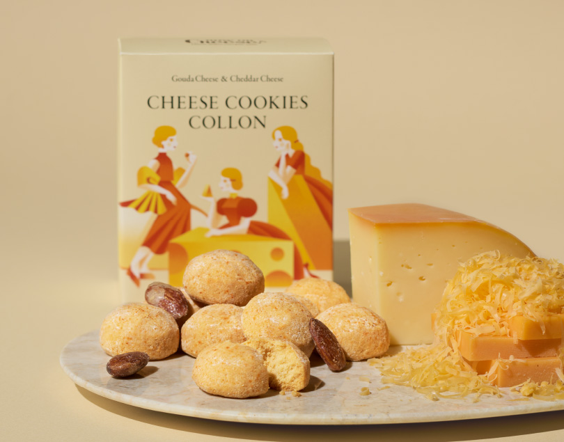 「チーズクッキーコロン ゴーダ&チェダーチーズ」は、『厳選したチーズを惜しみなく使用する』というNow on Cheese♪のコンセプトを体現した、チーズ好きにはたまらないクッキーです。生地にはゴーダとチェダーの2種類のチーズを贅沢に練り込み、仕上げにチェダーチーズパウダーをまぶしています。
