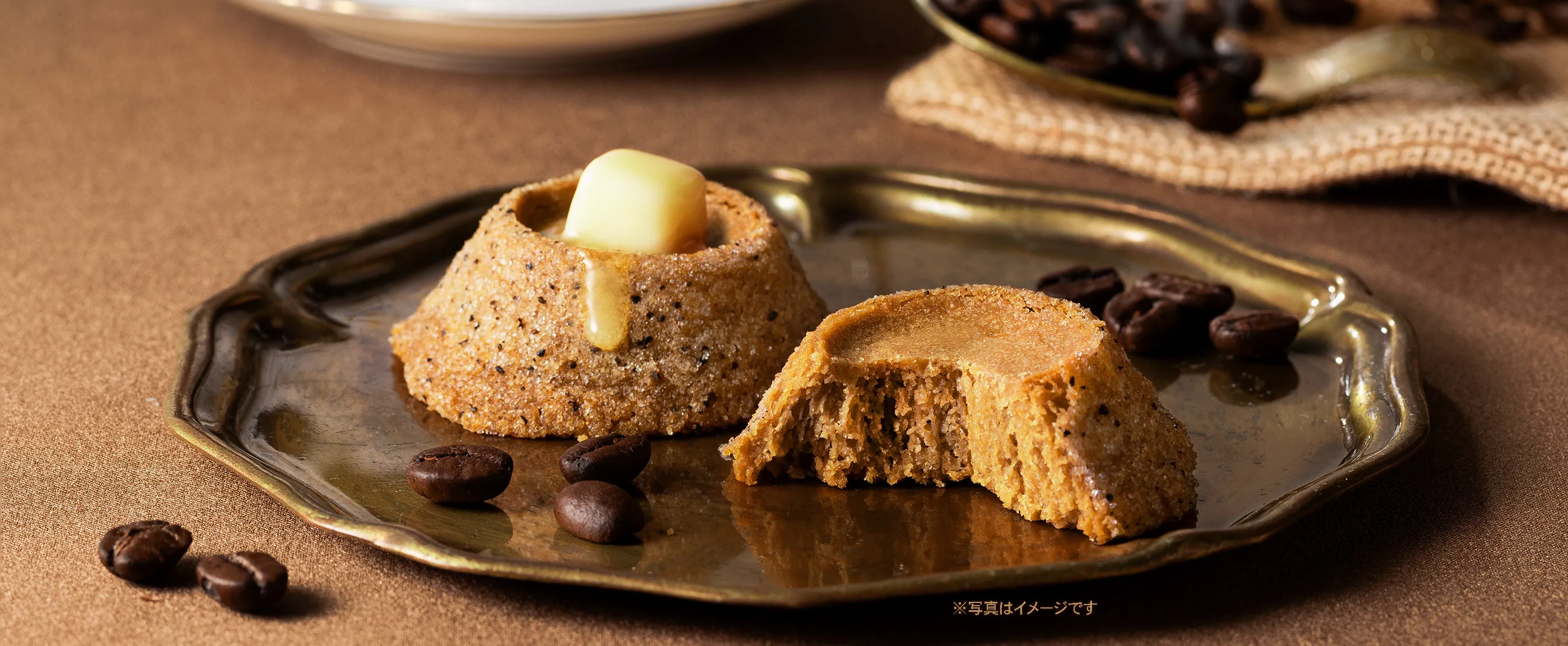 さらに外側は、ブラジル産のコーヒー豆を使用したシュガーでコーティング。バターの溢れる美味しさを表現するため、独自に開発した「なだれとろけ製法」で焼き上げており、バターのコクとコーヒーの力強い香りが口いっぱいに広がる味わいに仕上げています。