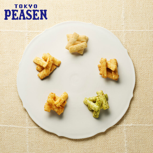 「東京ピーセン」は、さくさくと軽やかな食感と香ばしい風味が魅力のピーナツ揚げ。榮太樓總本鋪の「塩」に加え、にんべんの「かつお節」、山本山の「あおさ」、やげん堀の「七味唐辛子」、更科堀井の「ゆずきり」など、東京を代表する銘店とコラボした多彩な味わいが楽しめます。ひと袋ごとに異なる個性があり、食べ比べできるのも魅力です。