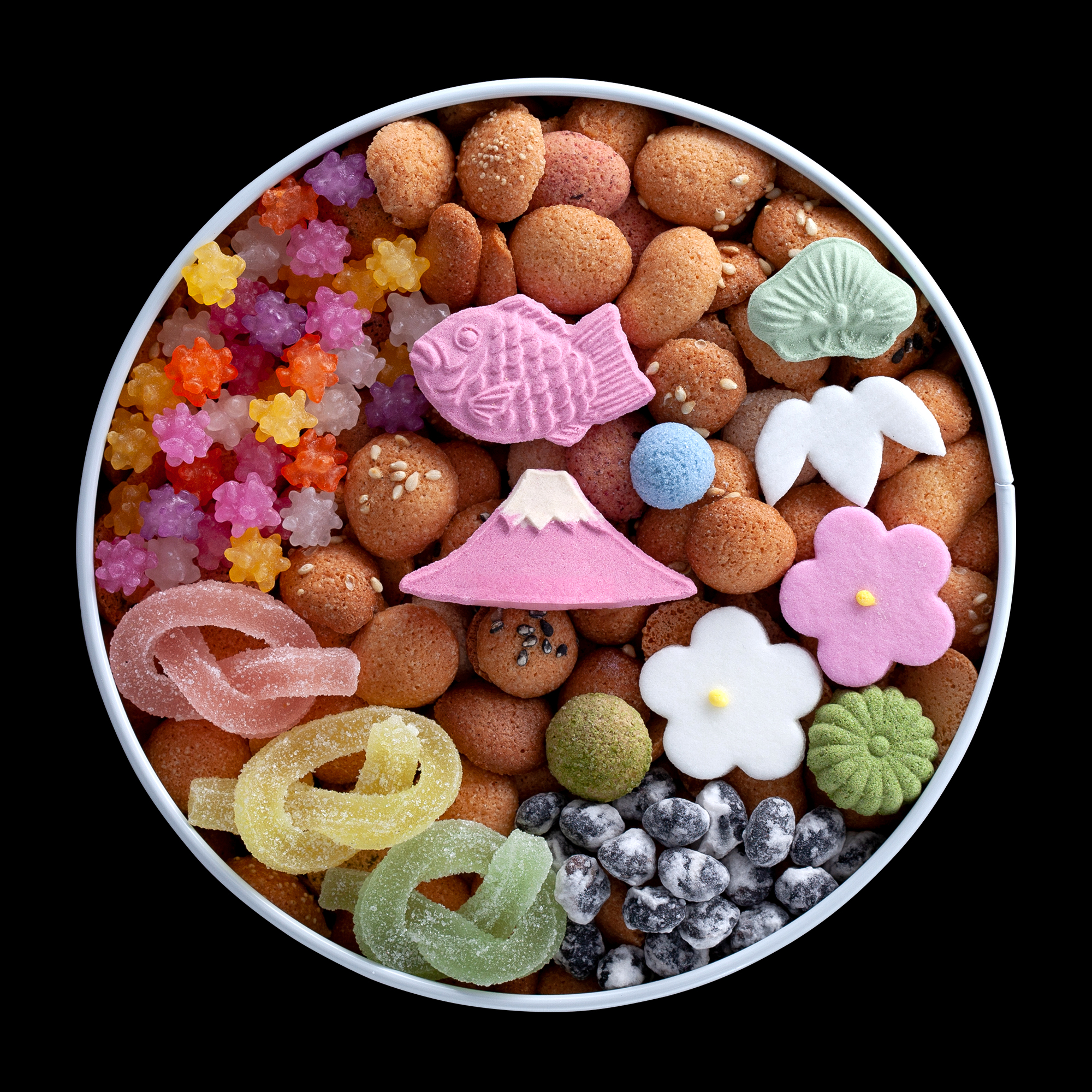 「冨を集める」という意味が込められた縁起の良いお菓子で、お祝い事や贈り物にも選ばれているのが特徴。通年商品に加え、季節やテーマごとの缶も展開されており、用途やシーンに合わせて選べるのも魅力です。目上の方へのお土産はもちろん、特別感のある贈り物としても重宝される和菓子です。