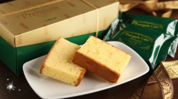 沖縄の観光スポット「名護パイナップルパーク」で販売している、完熟の果汁がたっぷりしみ込んだケーキです。果汁だけでなく、生地には果肉がたっぷりと使われています。