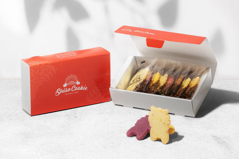 魔除けの役割を持つ守り神として有名なシーサーをモチーフにしたクッキーです。「沖縄ならでは」の素材をたっぷりと使用しており、こだわりのレシピで丁寧に焼いて作り上げたショートブレッドになります。テイストは、「オリジナル」「紅芋」「マンゴー」「シークワーサー」「黒糖」「さんぴん茶」「まーす(沖縄の塩)」「チョコチップ」とバラエティ豊かな8種類があります。