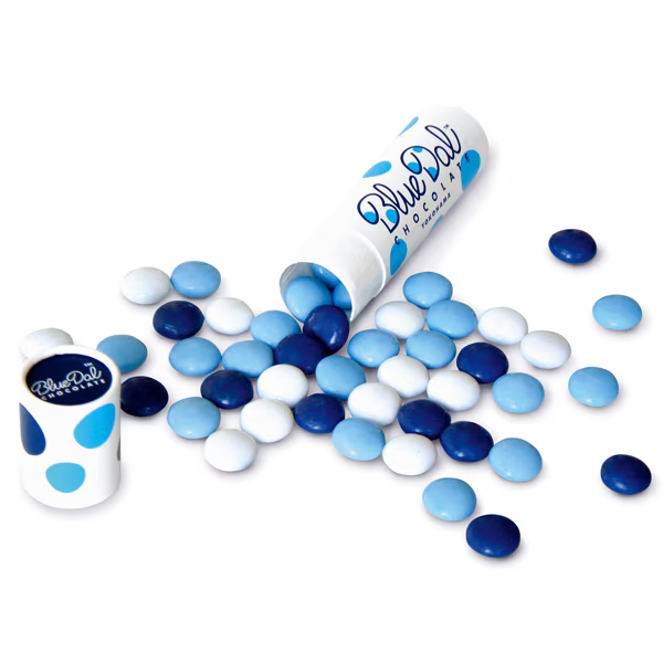 「ブルーダルチョコレート」は、横浜生まれイメージキャラクターであるダルメシアン・ブルーダルの斑点をイメージした、色鮮やかなマーブルチョコです。横浜のシンボルカラーである「ブルー」を基調とした、手のひらサイズのスタイリッシュな筒型パッケージが目を引きます。