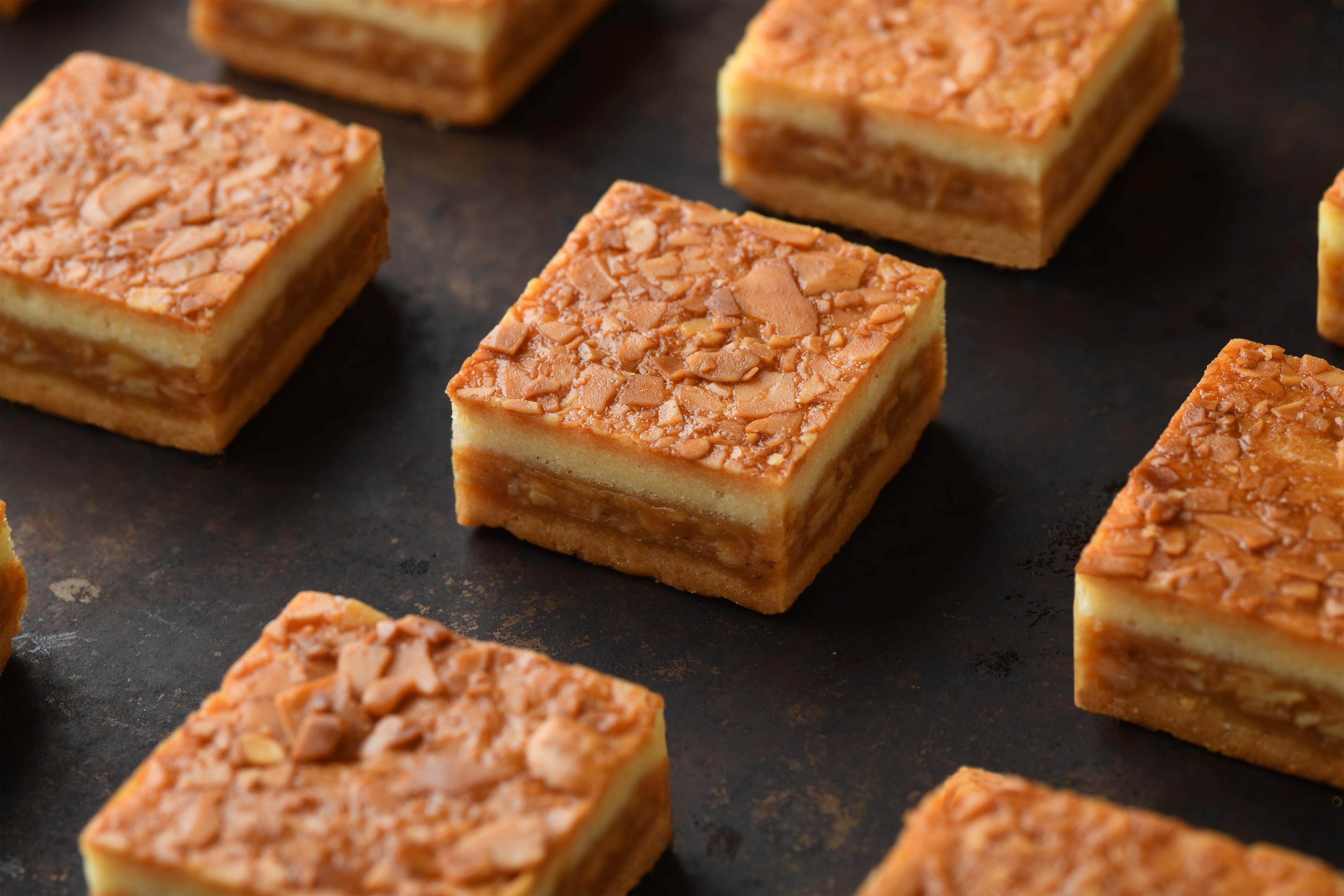 特製のクッキー生地に、自家製生キャラメルを絡めローストしたアーモンドをサンドして、じっくり焼き上げた「横濱レンガ通り」。自家製生キャラメルはパティシエが心を込めて火加減を調整しながら銅鍋で炊き上げており、手作業ならではの美味しさを味わえます。