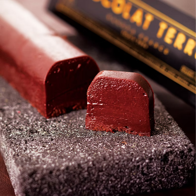 「ショコラテリーヌ」は、エクアドル産カカオ70%の高級クーベルチュールチョコレートを使用したテリーヌです。チョコレート、バター、砂糖、小麦粉、卵の5つのシンプルな素材のみで作られた一品で、滑らかな口当たりとチョコレート本来の濃厚なコクと甘みが特徴。香料不使用で、力強いカカオのアロマを感じられます。