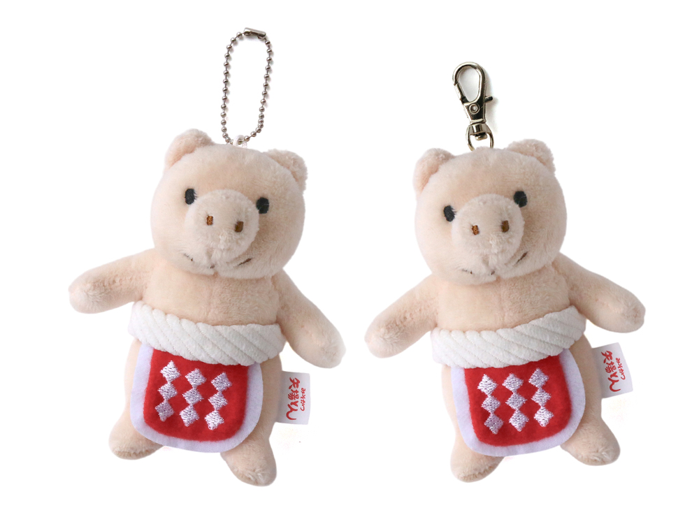 取り付けに便利なフックタイプと、定番のボールチェーンタイプの2種類展開。前面はもちろん、後ろも可愛いぶーチャームは、通学カバンや通勤カバンに付けたら人気ものになること間違いなし。特にお子さまや女性へのお土産としておすすめの商品です。
