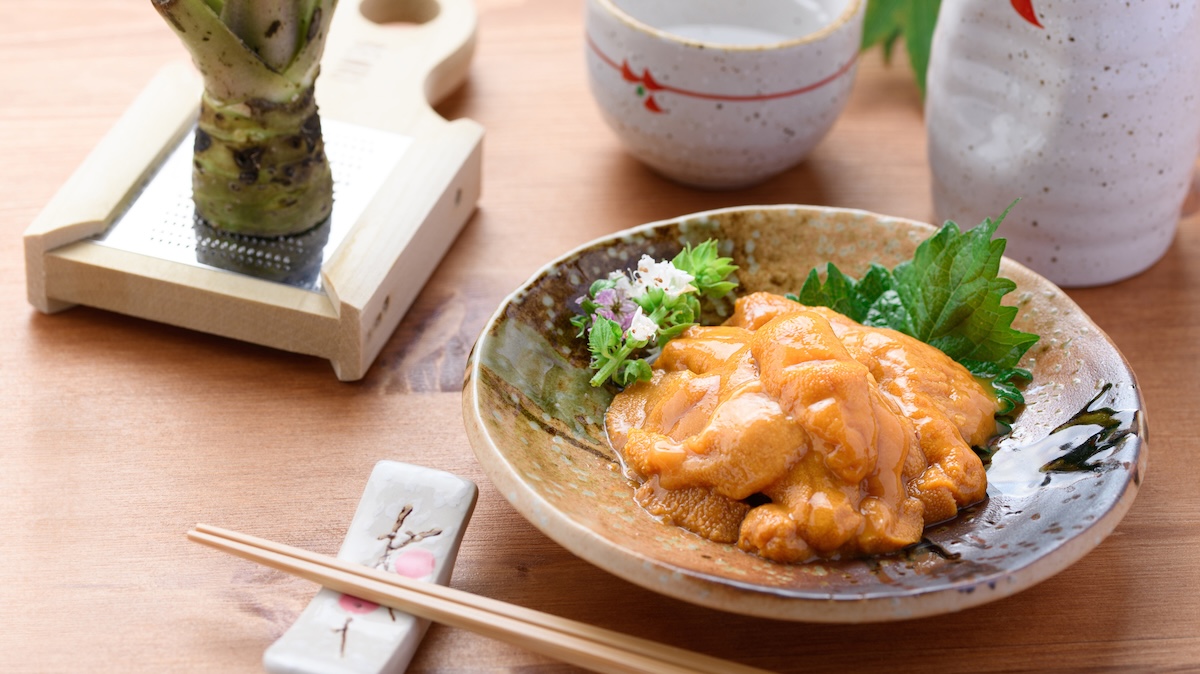 赤ウニは、濃厚な旨みで甘みが強く、口に入れた瞬間にふわっと広がる磯の香りと、苦味がなく、上品な甘さが特徴です。淡路島では保存のためのミョウバン水を使わないため、雑味のない、そのままのウニのおいしさが味わえるのも大きな特徴です。