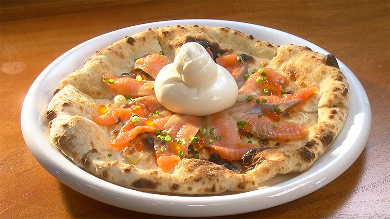 洲本市内や淡路島の豊かな食材が味わえるお店として、福良湾で育った「淡路サクラマス」の旬にしか食べられない季節限定メニューも提供しています。フレッシュチーズのひとつ、ブッラータチーズを組み合わせたピザ「サクラマスブッラータ」や、「サクラマスのクリームパスタ」など、「淡路サクラマス」と淡路島の乳製品を組み合わせたメニューが揃います。