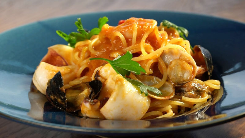 パスタは30種類から、好みのソースに合う生パスタを選べます。ソースも淡路島周辺の海で獲れた魚介類を使った「海の幸のペスカトーレ」や、「淡路島ポークと季節の野菜のラグー チーズ添え 燻製バター風味」など、淡路島の特産品を使用。もっちりしたパスタの食感を引き立てています。