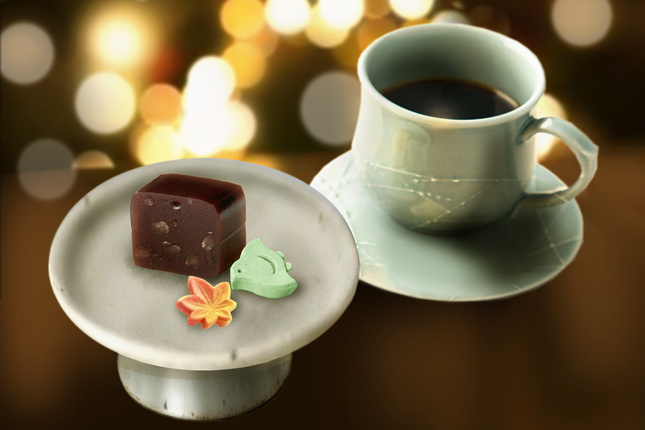 珈琲のお供には『二條若狭屋』や『鶴屋吉信』をはじめとした、ご近所の和菓子屋さんの和菓子を季節ごとにセレクト。四季を感じる空間装飾とやわらかな灯りに包まれながら、京都らしさと新しさが融合した「和菓子×珈琲」をゆったり堪能してください。