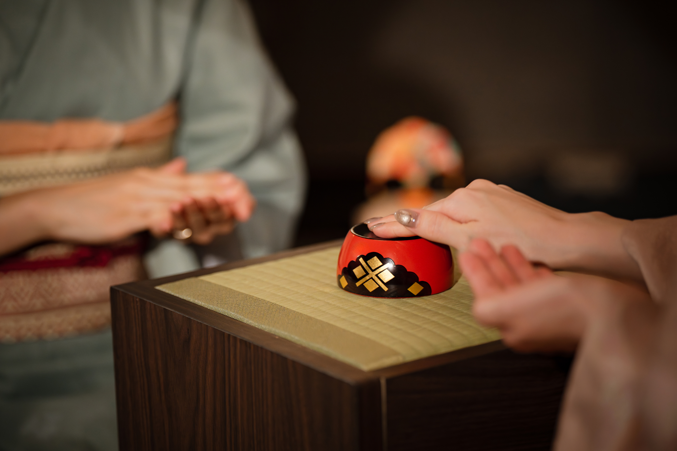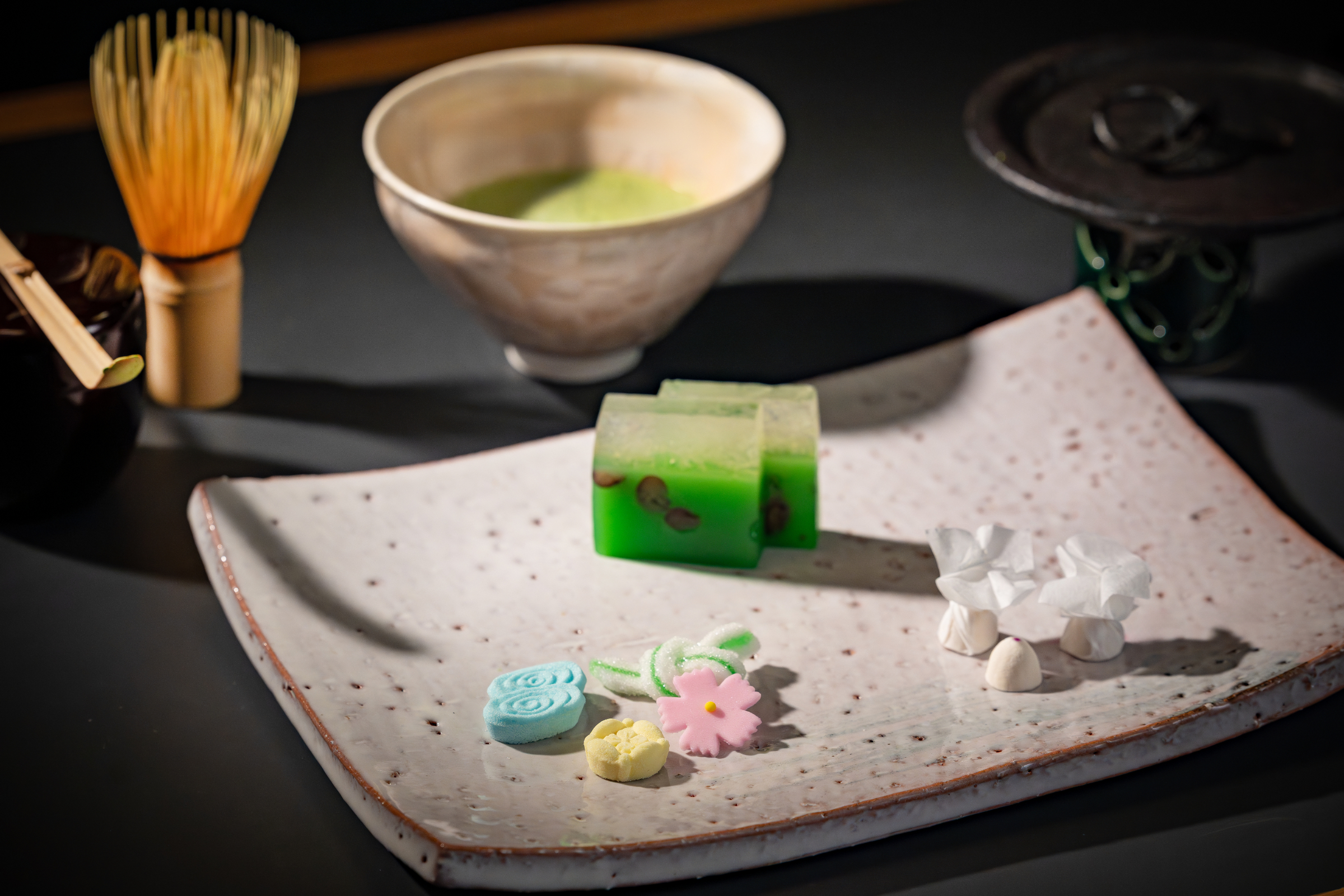 ちなみに茶話会とは、お茶やお菓子を楽しみながら気軽に交流ができる場のこと。ここでは老舗『祇園辻利』の抹茶を目の前でたてて、創業300年の歴史を持つ『鍵善良房』の和菓子とともに提供してくれます。お菓子は舞妓さんの「おちょぼ口」でも食べやすい一口サイズの和菓子や季節の羊羹など3種類から選べます。