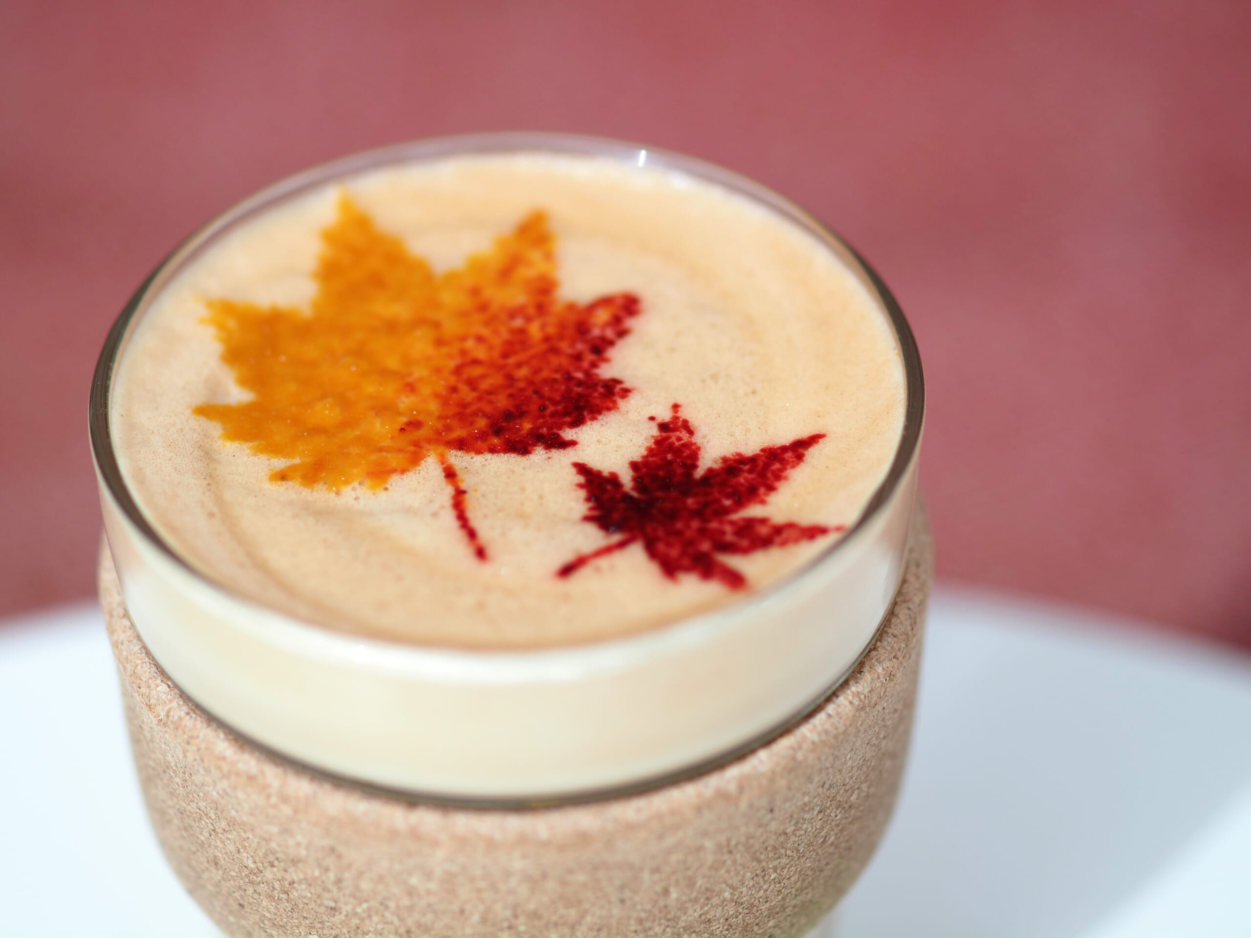 スケートで冷えた体を温めるのにぴったりな、秋限定のドリンクも登場します。甘く香ばしいキャラメル味のホットラテには紅葉のラテアートが施され、見た目からも秋の訪れを感じられます。森の中のスケートリンクという特別な空間で、スケートの合間に至福のティータイムを過ごしてください。