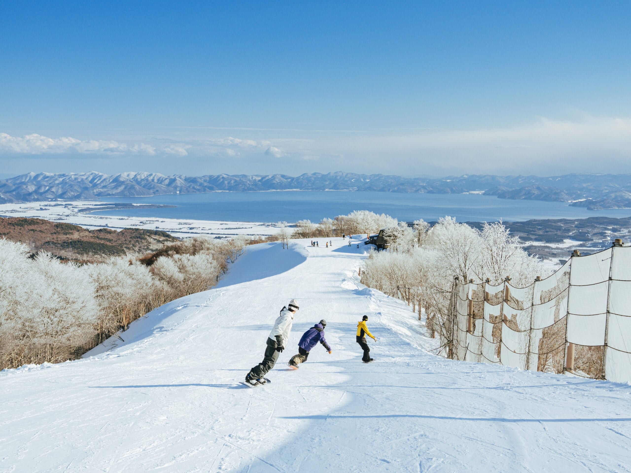 約5か月間のロングシーズン営業を予定しているネコマ マウンテンでは、11月末の晩秋からGWまで、移りゆく季節とともに雪質や景色の変化を楽しむことができます。磐梯山、猪苗代湖、霧氷などの絶景を望みながら、初級者も上級者も、自分のレベルに合ったコースを満喫できるのが魅力です。