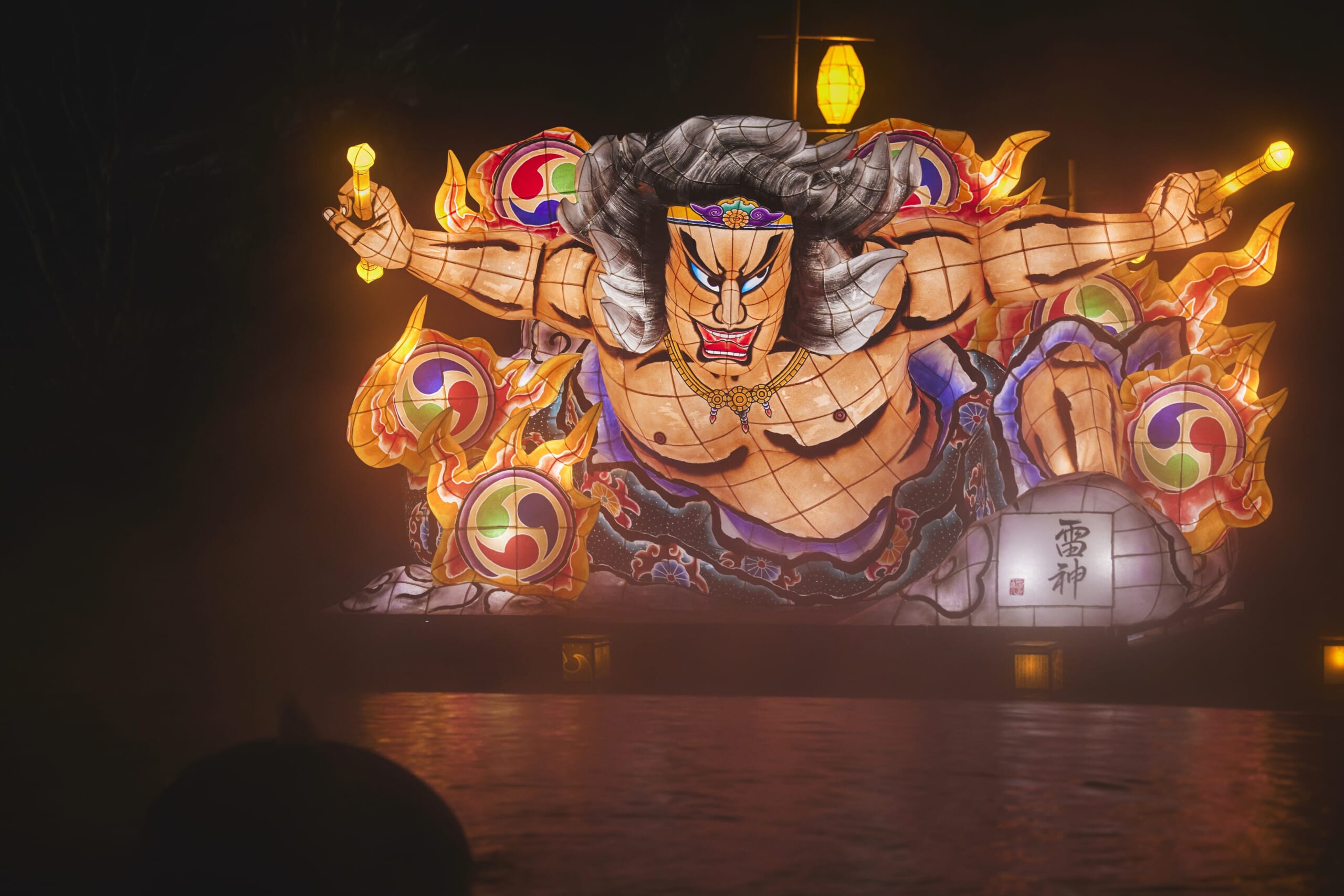 露天風呂を囲む池に浮かぶねぶたは毎回テーマが異なり、これまで疫病や邪気から人々を守る「鍾馗(しょうき)」、知恵や開運をもたらす「毘沙門天」など縁起の良いモチーフが採用されてきました。2022年からは、災いや邪気を払い、さらなる発展を願う思いで制作された「雷神」が登場。