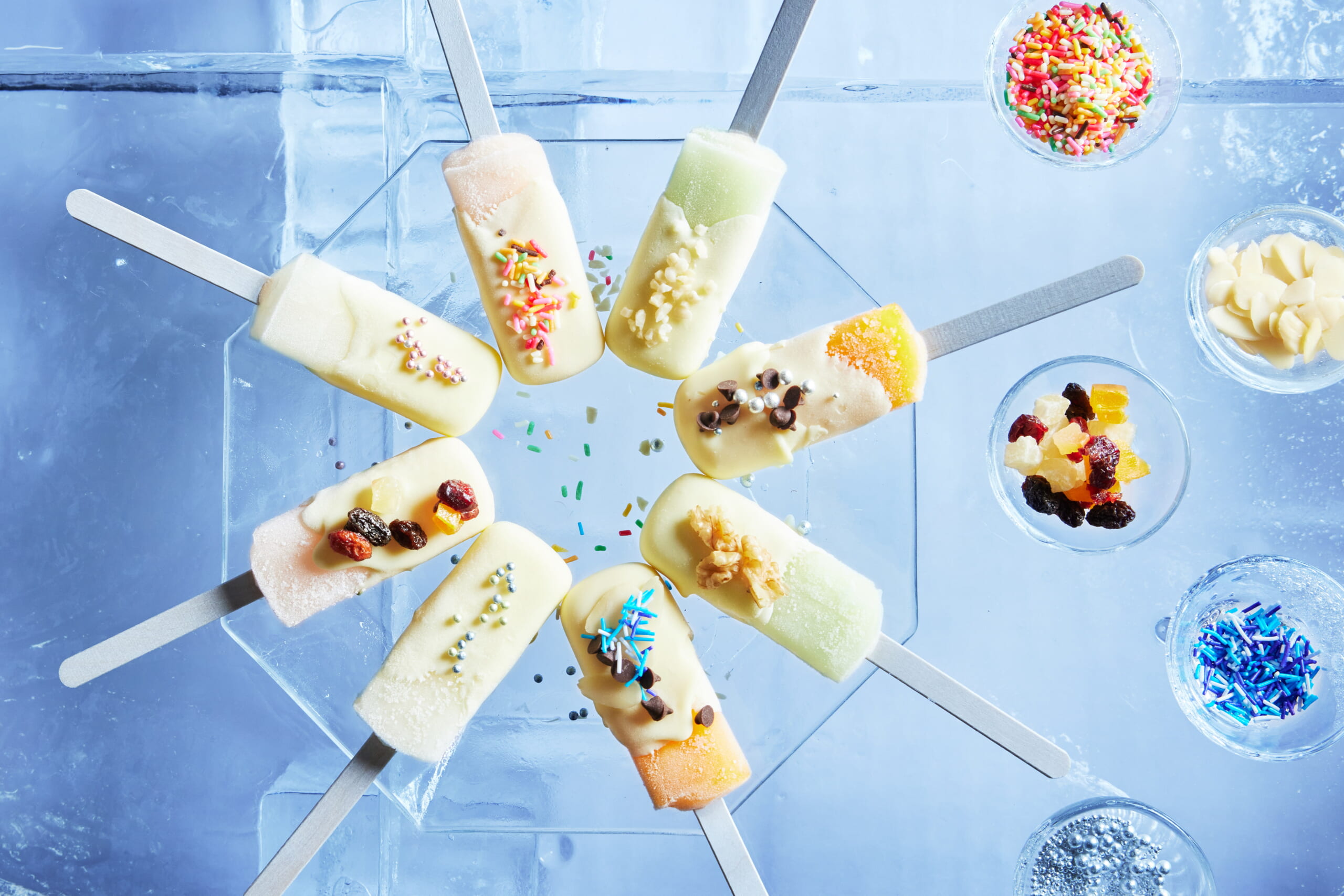「氷のスイーツショップ」では、寒さを活かしたユニークなスイーツを提供。氷の器にチョコレートを流し込み、固まる様子を観察できる「オリジナルチョコレート作り」、アイスバーに温かいホワイトチョコレートをつけて作る「ホワイトショコラアイスバー」など、作るのも食べるのも楽しいスイーツが揃っています。