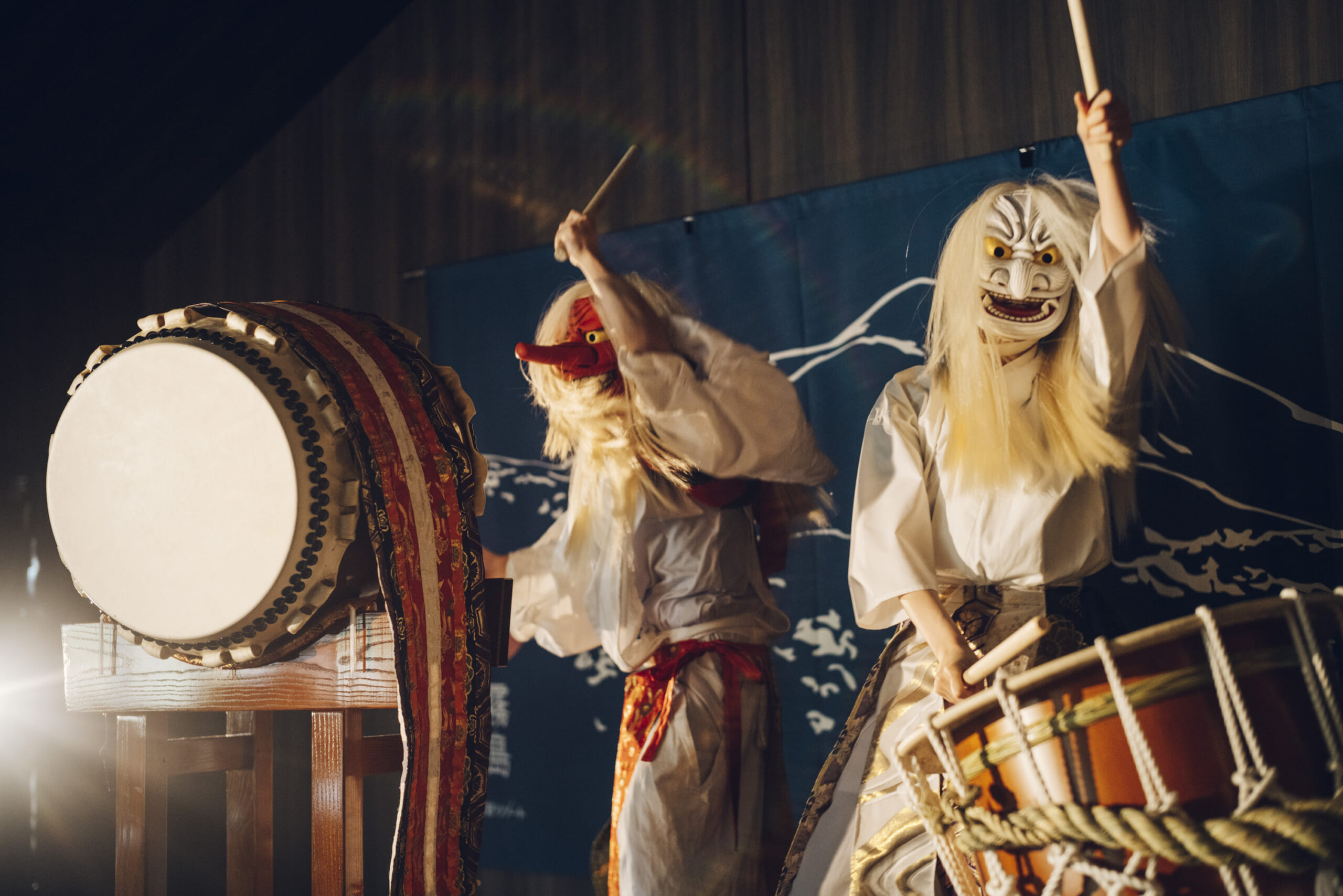 「天孫降臨ENBU(えんぶ)」は、天孫降臨神話を表現した界 霧島のご当地楽。演舞に登場する面は、霧島神宮に祀られている九つの面(九面)を模したものです。『霧島開運旅2026』プランでは霧島神宮での特別祈願に加えて、一般公開されていない九面を特別拝観することができます。