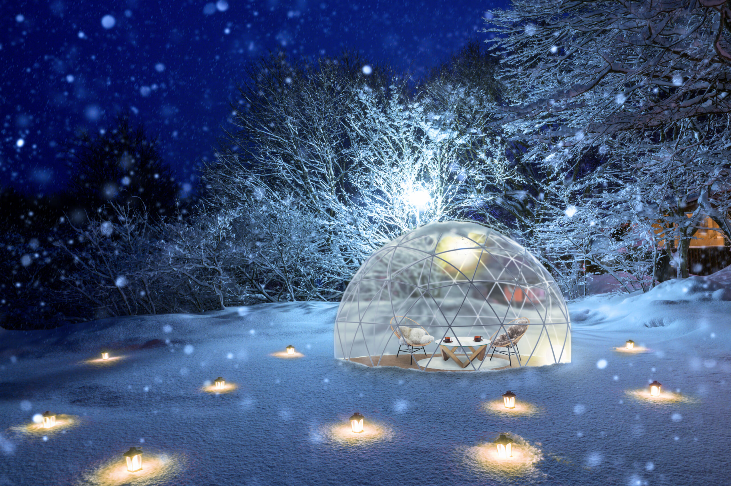湯浴みで心身ともに癒された後は、湯上がり用の特等席でまったり。あたり一面に広がる絵画のような銀世界、しんしんと降り積もる雪が、日常の喧騒を忘れさせてくれます。湯冷めを防ぐコートと、ホテルオリジナルのアップルジンジャーティーが用意されているので、湯上がり後も体を温めながら森の静けさに浸りましょう。