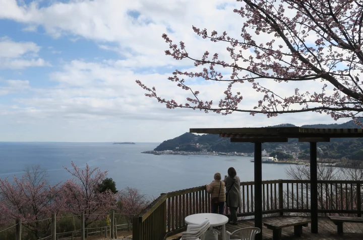 JR伊豆多賀駅から熱海高校まで約700メートル続く遊歩道「四季の道」では、『あたみ桜四季の道桜まつり』が開催。400メートルの斜面に植えられた約100本の「あたみ桜」を、目の高さで楽しむことができます。道中の展望台から眺める、相模湾に浮かぶ初島はまさに絶景!