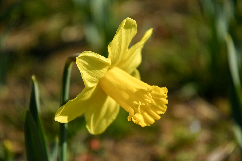 ひとくちにスイセンといっても、その種類は様々。改良された園芸品種も合わせると、じつに1万種以上が存在するといわれています。スイセンの丘で現在見頃を迎えているのは、鮮やかな黄色とラッパのような形をした副花冠をもつ品種『タマラ』。開花時期が早いのが特徴で、春の訪れをいち早く感じさせてくれます。