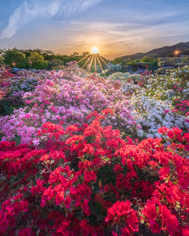 5,000株以上のツツジも咲き誇ります。例年の見ごろは4月中旬〜5月上旬頃。世界中に分布し、園芸種も含めると1,000を超える品種が存在するツツジ。鮮やかな花の競演は、藤とはまた違った春の華やかさを楽しめます。