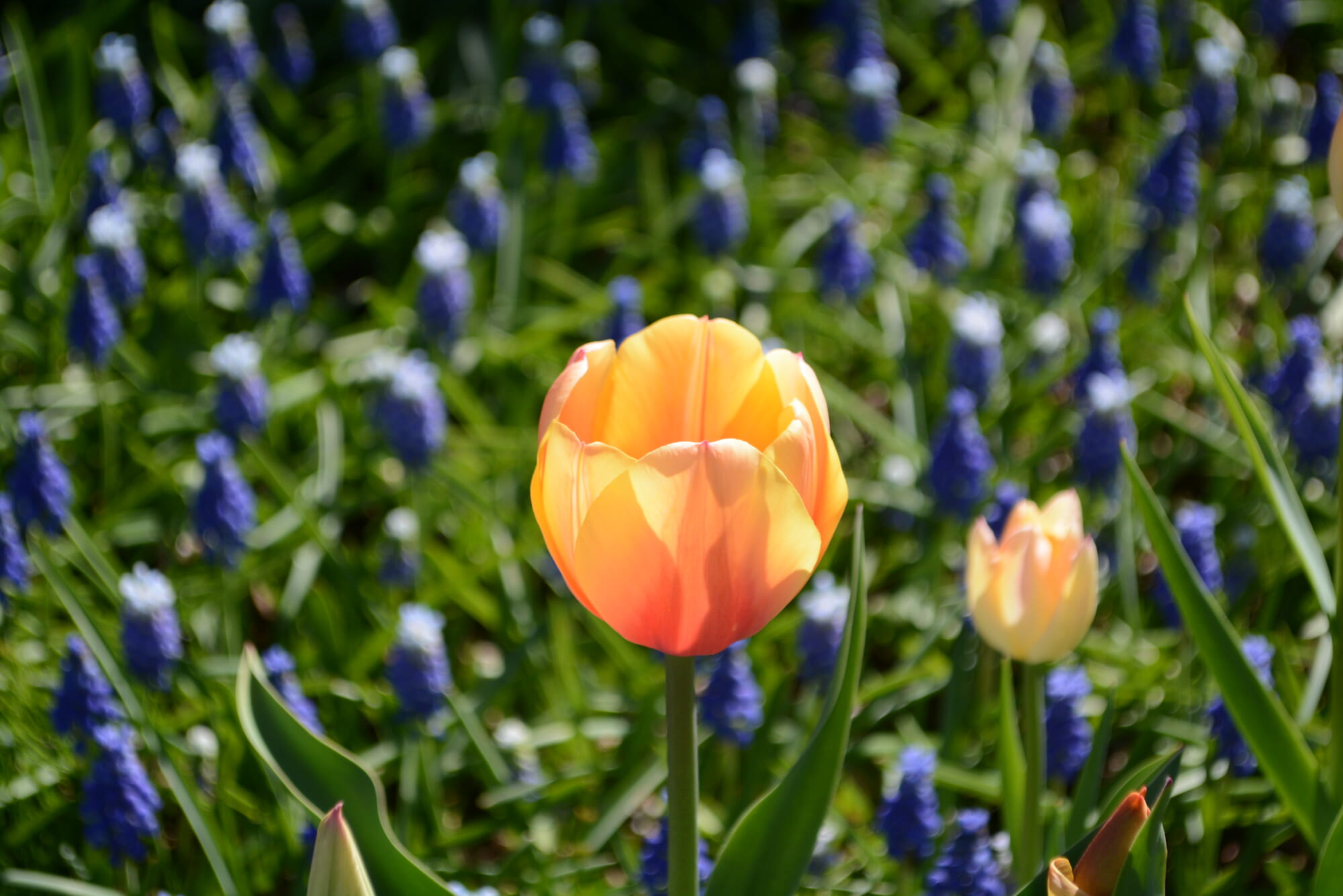 今年から穂高口に新たにネモフィラが植栽されました。2,000㎡の花壇に3.2万株が咲き揃い、現在見ごろを迎えています。三種の花を一度に楽しめるのは、今年ならではの見どころです。